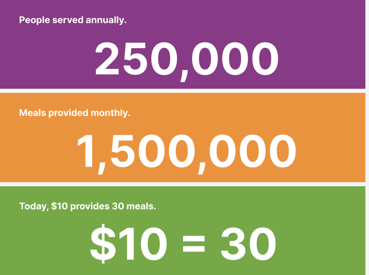 With $10 providing 30 meals, every gift moves us closer to one million meals – nearly a full month of food for our community.